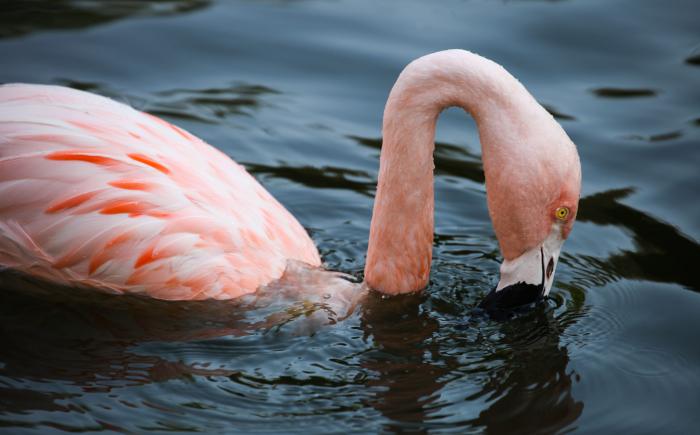 نادرا ما يأخذ الطعام من سطح الماء، ولحجمه الكبير فهو قادر على الوصول إلى المياه العميقة للحصول على غذائه.